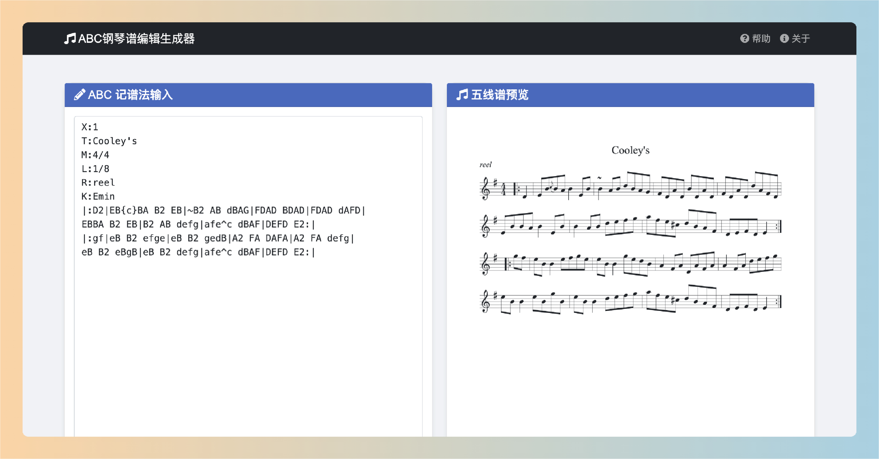 于是,我想起来了,我之前做的一个ABC钢琴谱编辑生成器,然后就对这个工具做了一些简单的优化。