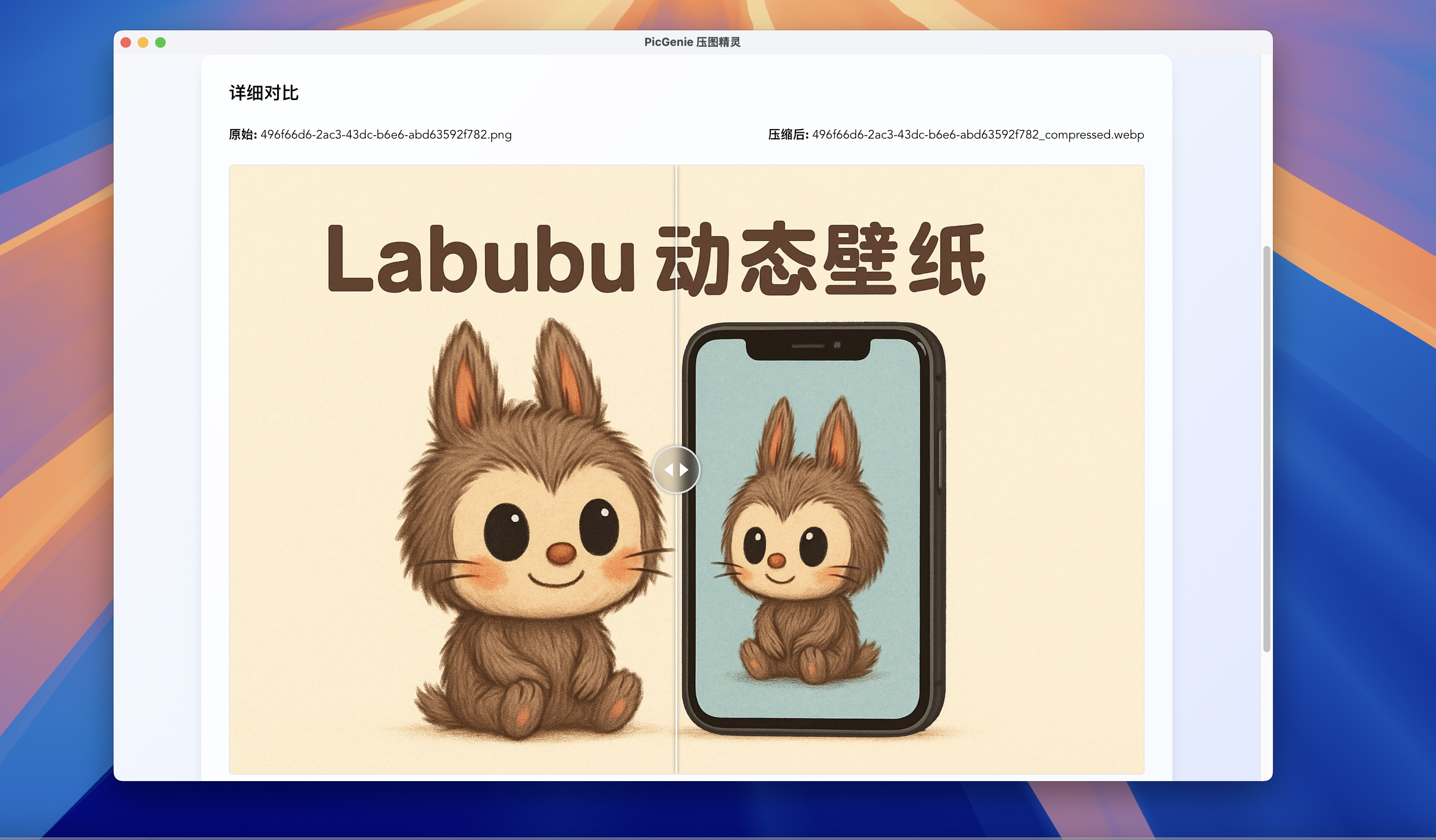 界面直接拖图片进去就能压缩,还能对比前后效果,支持暗黑模式,所有操作都在本地完成,图片不会上传,隐私有保障。压缩效果也很赞!