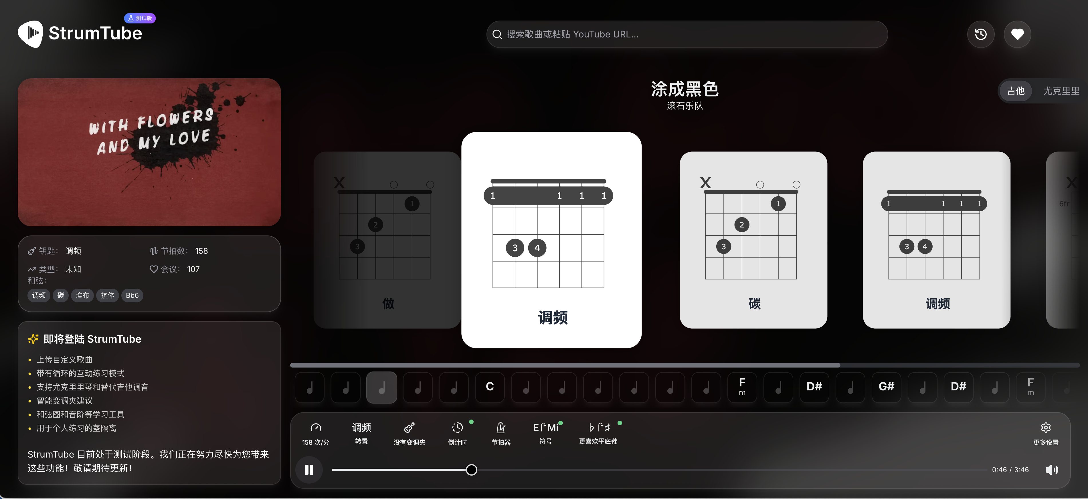 贴个油管歌曲链接,它能瞬间生成超准和弦,支持吉他/尤克里里。自动识别和弦 + 智能变调夹建议,支持变速、节拍器、循环练习