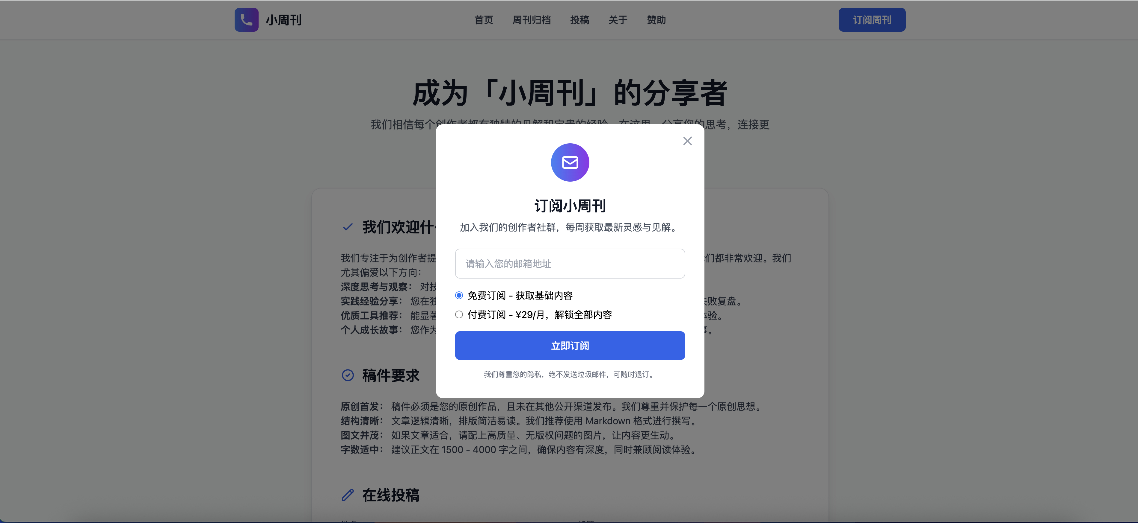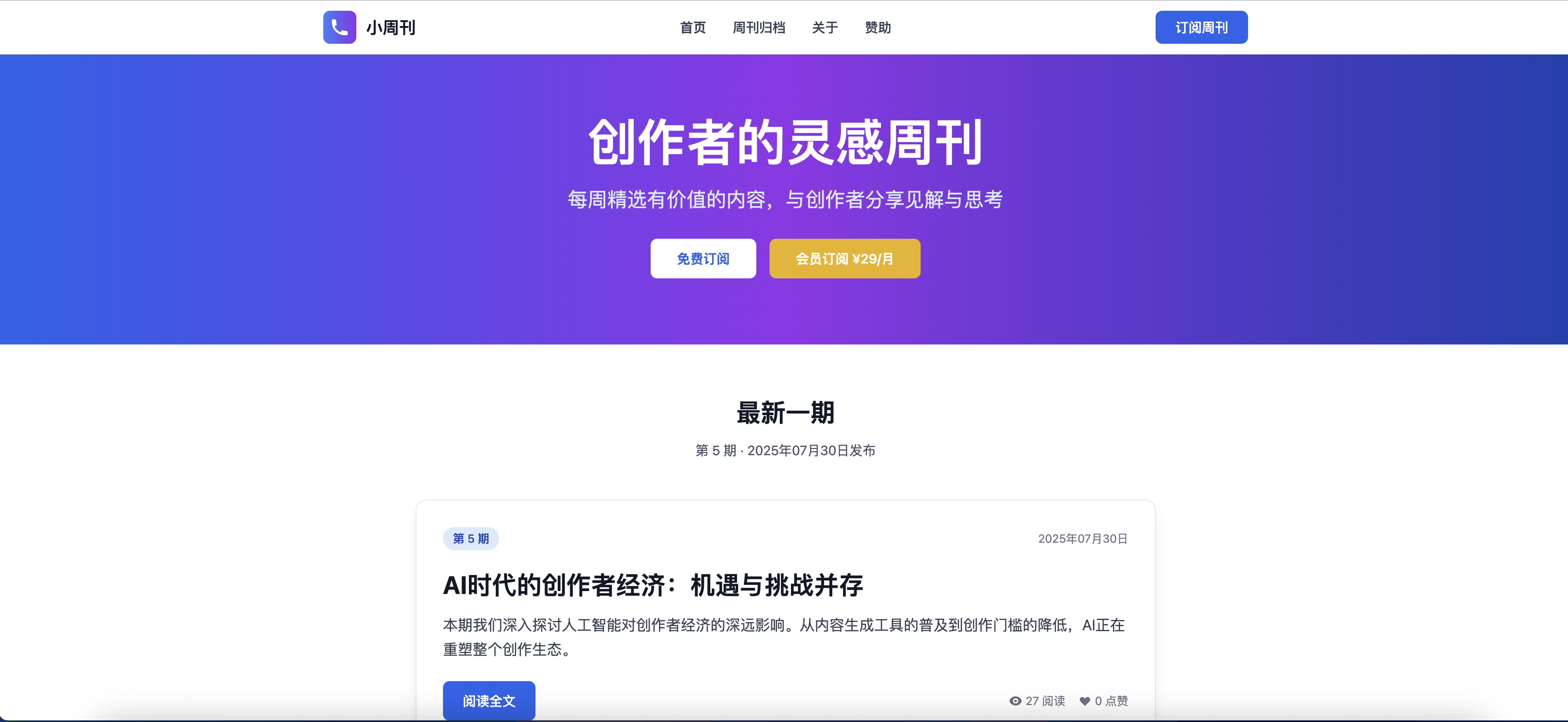 新增激活码管理插件,通过激活码管理付费会员,支持多种会员类型...拿小多8/6/2025新增激活码管理插件,通过激活码管理付费会员,支持多种会员类型和批量生成激活码,这样方便在淘宝等出售激活码来激活月费、季费、年费或终身会员。这样做是为了降低门槛,因为支付宝、微信支付,基本上只有企业才能申请支付接口。当然,后面也可以再搞个支付插件来解决直接支付的问题。 查看图片 - 转发 @拿小多: 开发一套小周刊系统,支持SMTP 邮件推送周刊,免费+付费订阅,广告赞助。支持插件扩展和主题模版、API接口,专为周刊而设计的系统。 返回首页查看原文