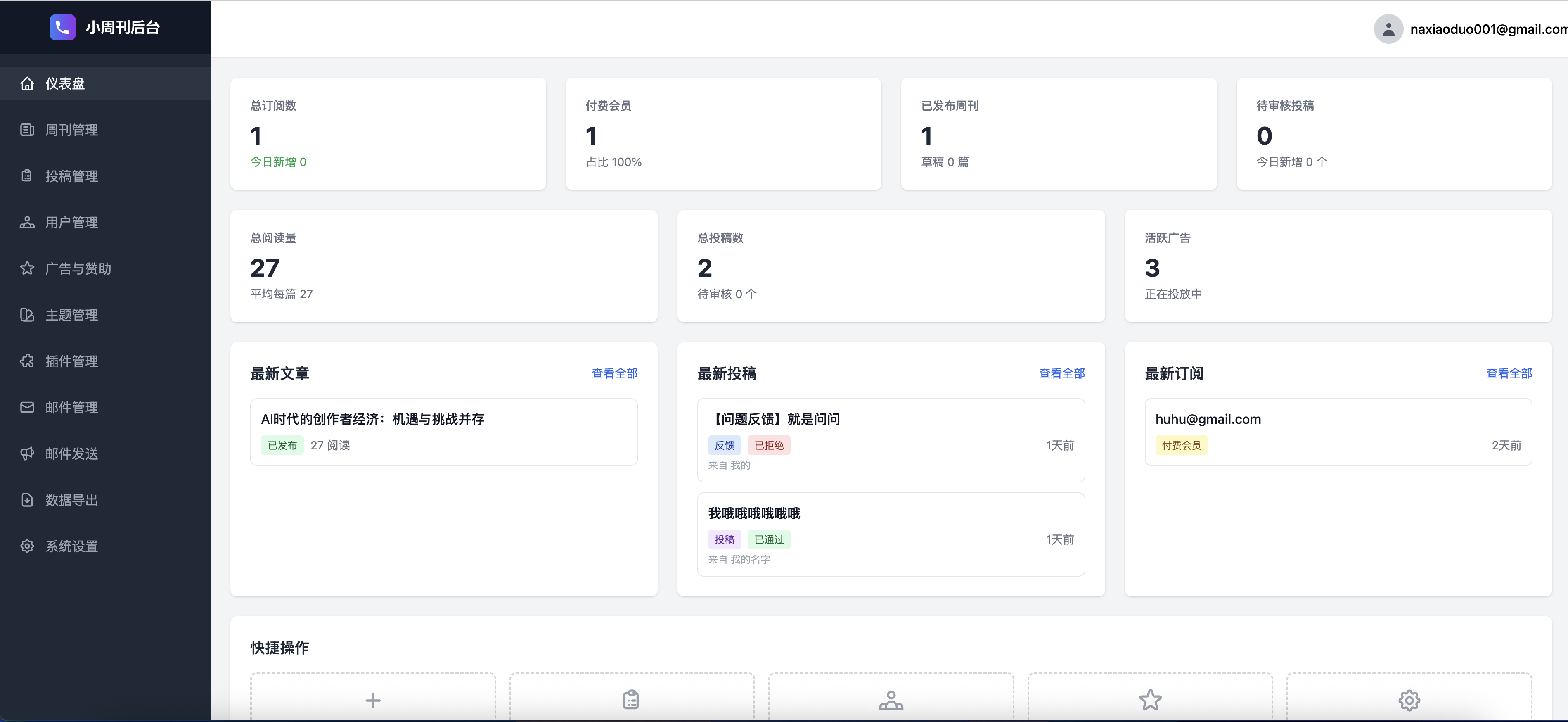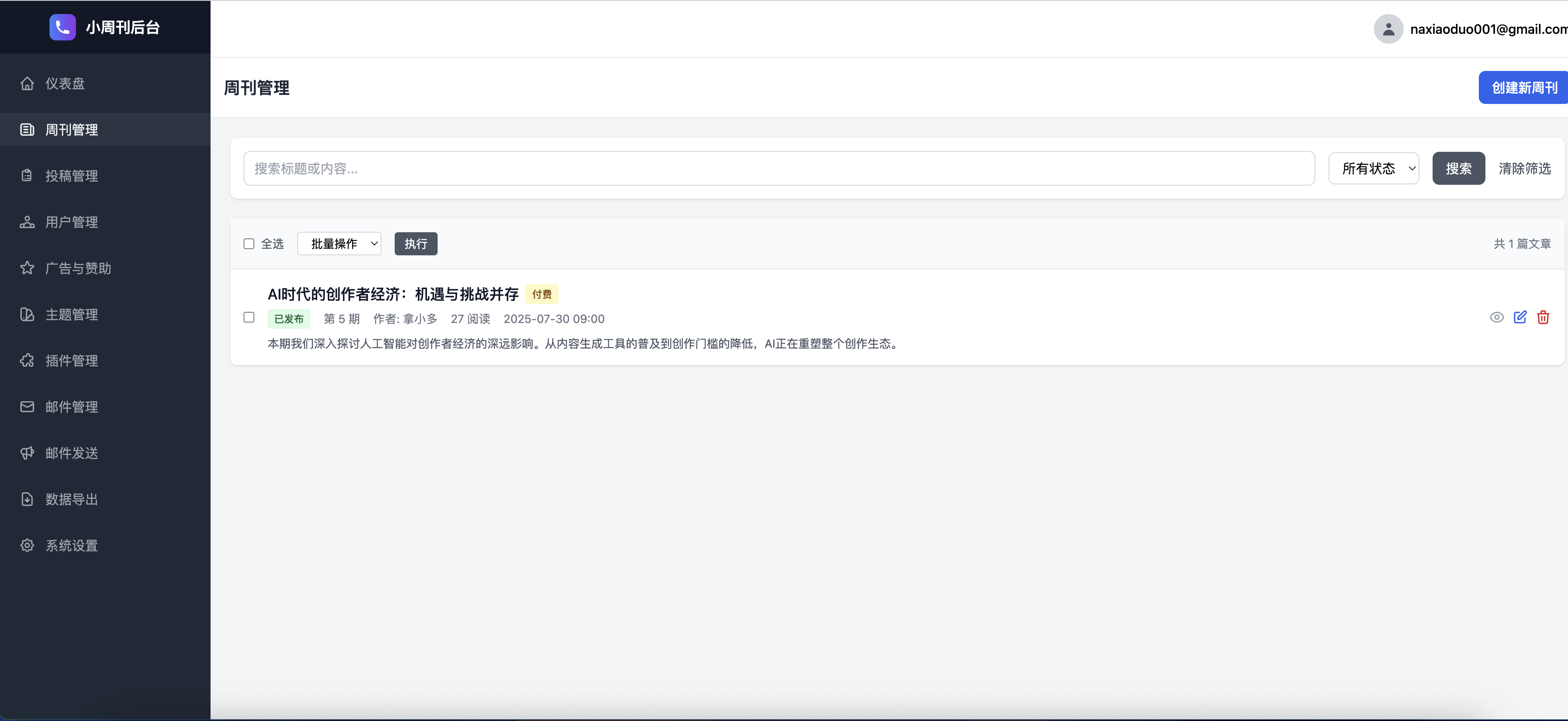 1.新增支付插件,集成支付宝、微信支付、虎皮椒支付等,支持会...拿小多8/7/20251.新增支付插件,集成支付宝、微信支付、虎皮椒支付等,支持会员套餐购买。2. 支持自定义页面管理,可以创建和管理自定义页面。3.导航管理,支持删减新增修改导航栏和页脚页面板块。4.页面内容管理,可以修改各个页面的内容,非常方便。 查看图片 - 转发 @拿小多: 开发一套小周刊系统,支持SMTP 邮件推送周刊,免费+付费订阅,广告赞助。支持插件扩展和主题模版、API接口,专为周刊而设计的系统。 返回首页查看原文